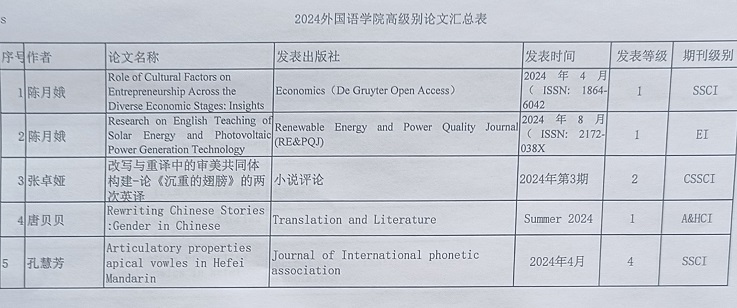 2024年外国语学院高级别论文汇总表