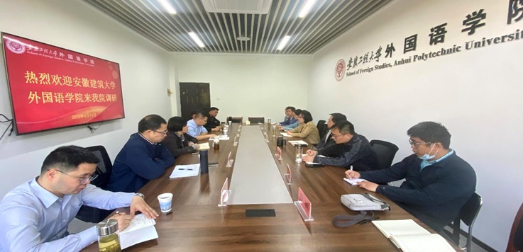 在调研交流中,安徽工程大学外国语学院党委书记董金权就学院在党建促发展方面的做法和成效进行了分享;副院长(主持工作)唐雪梅介绍了学院基本情况及近年来在学科建设、教学改革、教科研平台建设等方面的成果。随后,双方就新文科专业认证、人才引进、实验室建设、学生培养质量提升、师资结构优化、科研激励机制、大学英语无纸化考试等方面展开全面深入交流。