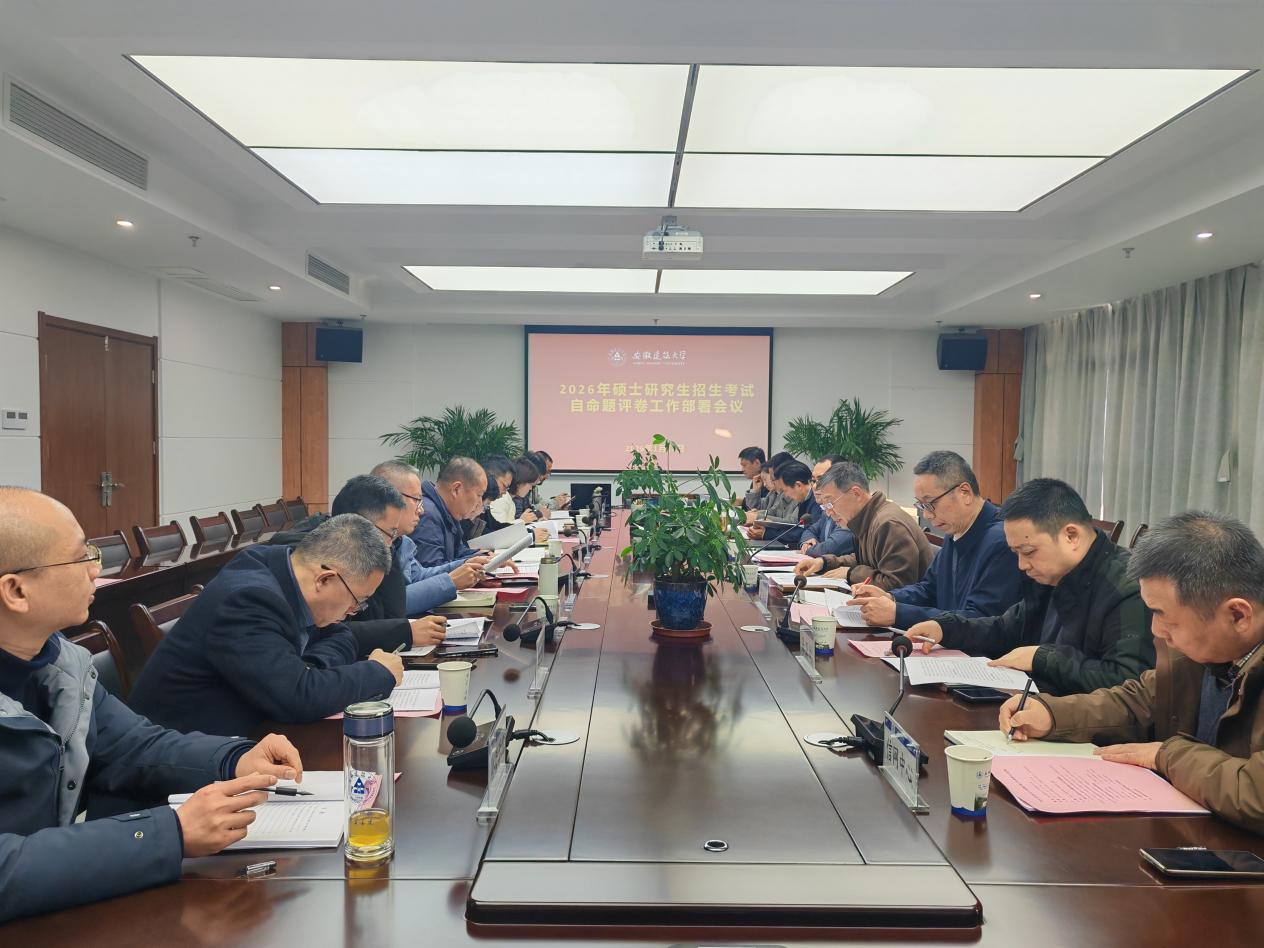 会议传达了教育部及安徽省教育招生考试院关于自命题评卷工作的最新文件精神。研究生院负责人汇报了2026年自命题科目整体情况,并就评卷工作作出具体安排;纪委办公室重点强调了回避制度、安全保密和工作纪律要求。