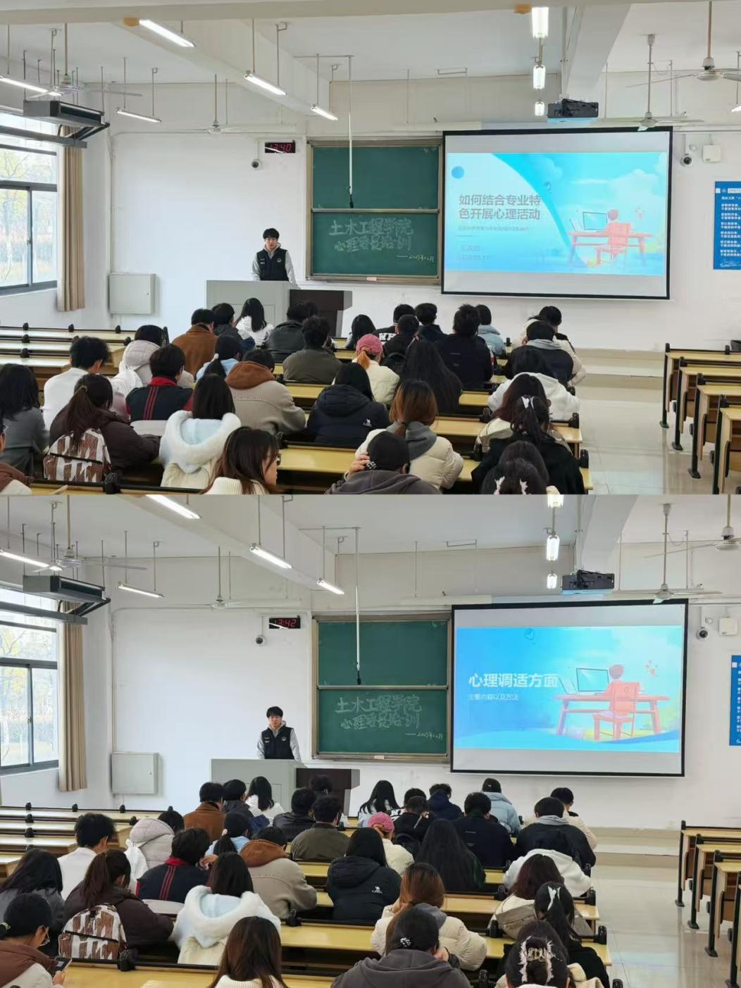 本网讯 为深入贯彻落实《全面加强和改进新时代学生心理健康工作专项行动计划(2023-2025)年》,进一步强化学院心理健康教育学生骨干队伍建设,健全“校-院-班-寝”四级心理预警防控机制。12月11日,土木学院在逸夫楼5103教室开展了心理委员专题培训。本次培训由学院辅导员老师宋宝萍担任主讲、各年级心理委员、宿舍心理信息员齐聚一堂,共同开启心理健康服务能力提升的成长之旅。