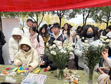 随着纸飞机划过一道道优美的弧线,不仅负面情绪仿佛也随之被“清空”,同学们的喜悦也被分享出去。作为告别过去、拥抱未来的仪式,每一位完成投掷的同学都领取到了一支鲜花。这不仅是一份礼物,更是一份来自生活的美好祝愿,寓意着在释放压力,分享喜悦后,心灵将迎来如花般绽放的时刻。