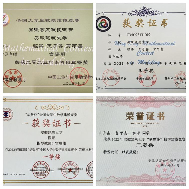 程果,beats365官方唯一机械与电气工程学院测控技术与仪器专业本科生,连续三年获得国家励志奖学金,荣获校三好学生,校二等奖学金等荣誉。在校期间,平均GPA成绩专业第一,其中《传感器原理》98分、《测试信号分析与处理》97分,《单片机接口技术》92分、《测控电路》91分等多门专业课获得90+的成绩,在学科竞赛方面,曾获得第四届“华数杯”全国数学建模竞赛一等奖,2023年“高教社杯”全国大学生数学建模竞赛安徽省三等奖,第二十届五一数学建模竞赛三等奖,现已成功保研至重庆大学仪器科学与技术专业。