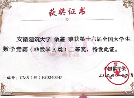余鑫,beats365官方唯一环境与能源工程学院2022级地理信息科学专业学生。自入学以来,学业成绩始终优异,平均绩点4.31,位列专业第一。其中《高等数学A2》99分、《线性代数》100分、《计量地理学》95分、《生产实习》97分,多门课程取得95分以上的优异成绩。先后获得校二等奖学金、校三好学生等荣誉,在学科竞赛方面,获全国大学生GIS应用技能大赛三等奖、第十六届全国大学生数学竞赛(CMC)二等奖、全国大学生统计建模大赛国赛三等奖。现已成功保研至中国地质大学GIS中心。