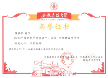 他积极参加学科竞赛和科研项目。曾作为项目负责人荣获第六届安徽省桥梁设计大赛二等奖,也参与了省级大学生创新创业训练计划项目,并顺利结项。同时也获得了羽毛球团体赛三等奖、运动会男子4×100米第二名等文体奖项。