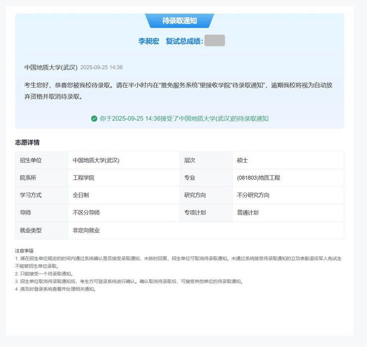 作为一名中共党员,李昶宏始终以更高的标准要求自己。在预推免面试中,他结合在建大学习到的工程特性分析方法,条理清晰地阐述了对地质灾害防治与资源勘查的理解。李昶宏相信,正是母校扎实的工科底蕴与勇于担当的精神,赋予了他独特的工程视角,使他能在众多竞争者中脱颖而出,成功获得中国地质大学(武汉)的青睐。