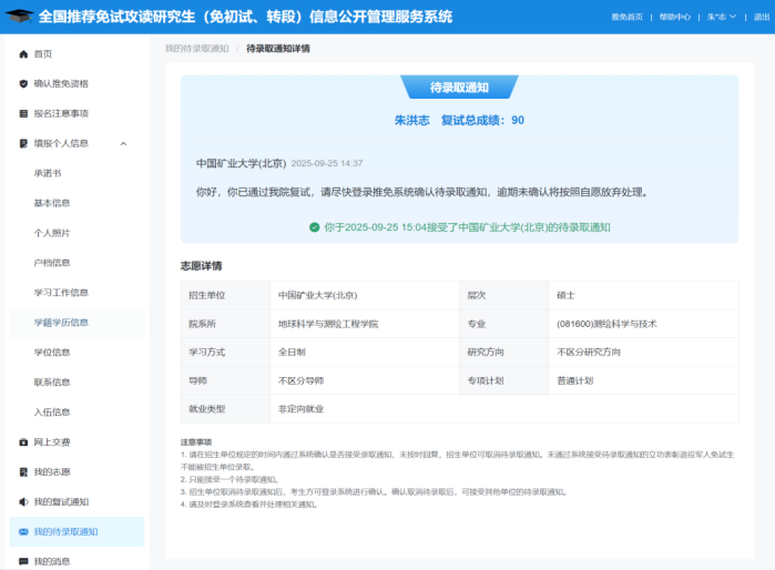 回望四年,测绘专业教会朱洪志以数据描绘山河,以代码解读大地。他收获了专业知识,也磨砺了迎难而上的勇气;触摸到科技前沿,更铭记了肩上的责任。感谢所有师长的指导与同窗的陪伴,未来朱洪志将继续带着这份踏实与热忱,在测绘与更广阔的天地中,步履不停,经纬人生。(文/图:宋宝萍、朱洪志;一审:马智鑫、方绍正;二审:帅英;三审:王媛、徐庆和)