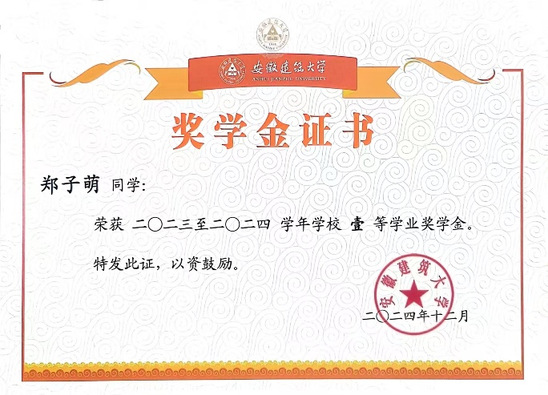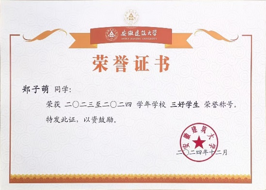 三年间,郑子萌获得ican大学生创新创业大赛模拟挑战赛校二等奖、社团CAD创新大赛三等奖、经管学院“我心中的雷锋”手抄报活动优秀奖、“最美笔记”评选活动二等奖,并通过了安徽考区VFP计算水平考试。一次次的科研攻坚与竞赛磨砺,让她深刻体会到:坚持,是突破自己瓶颈的关键,更是锻造核心竞争力的利器。