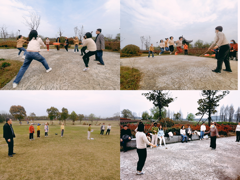 在官亭林海公园,参加活动的女教工抽签分成两组,以团队竞赛的形式完成了“同心击鼓”、“跳大绳”、“接力跳绳”以及“扔飞盘”等项目的比拼。每个项目经过彼此的鼓励与密切配合,大家都能从最初的生疏到最后出色地完成。活动现场充满了加油呐喊以及各种欢声笑语,热闹非凡。