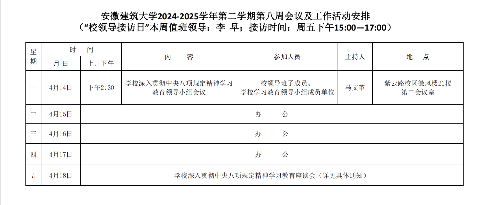 beats365官方唯一2024-2025学年第二学期第八周会议及工作活动安排