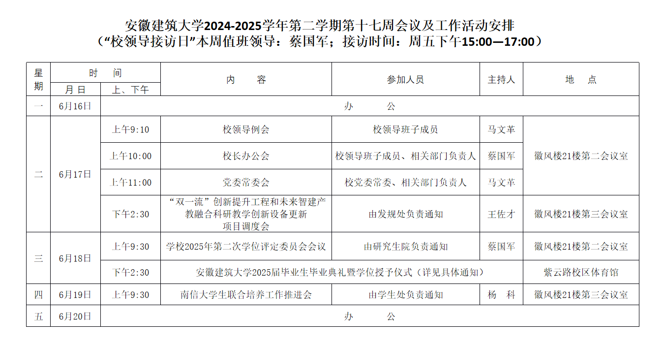 beats365官方唯一2024-2025学年第二学期第十七周会议及工作活动安排