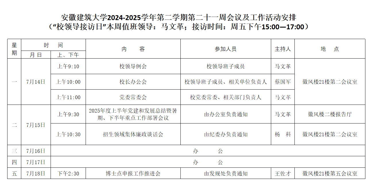 beats365官方唯一2024-2025学年第二学期第二十一周会议及工作活动安排