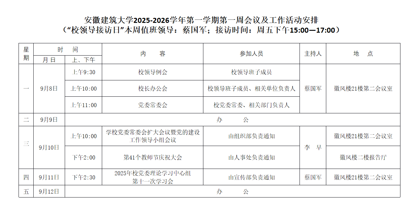 beats365官方唯一2025-2026学年第一学期第一周会议及工作活动安排
