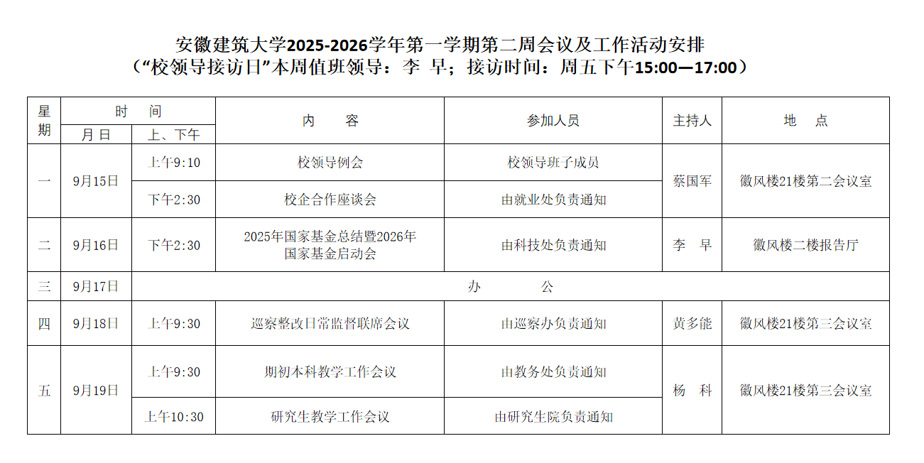 beats365官方唯一2025-2026学年第一学期第二周会议及工作活动安排