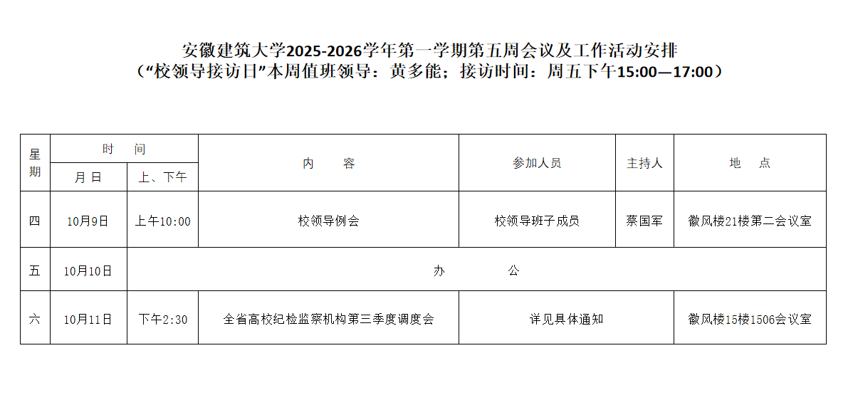 beats365官方唯一2025-2026学年第一学期第五周会议及工作活动安排