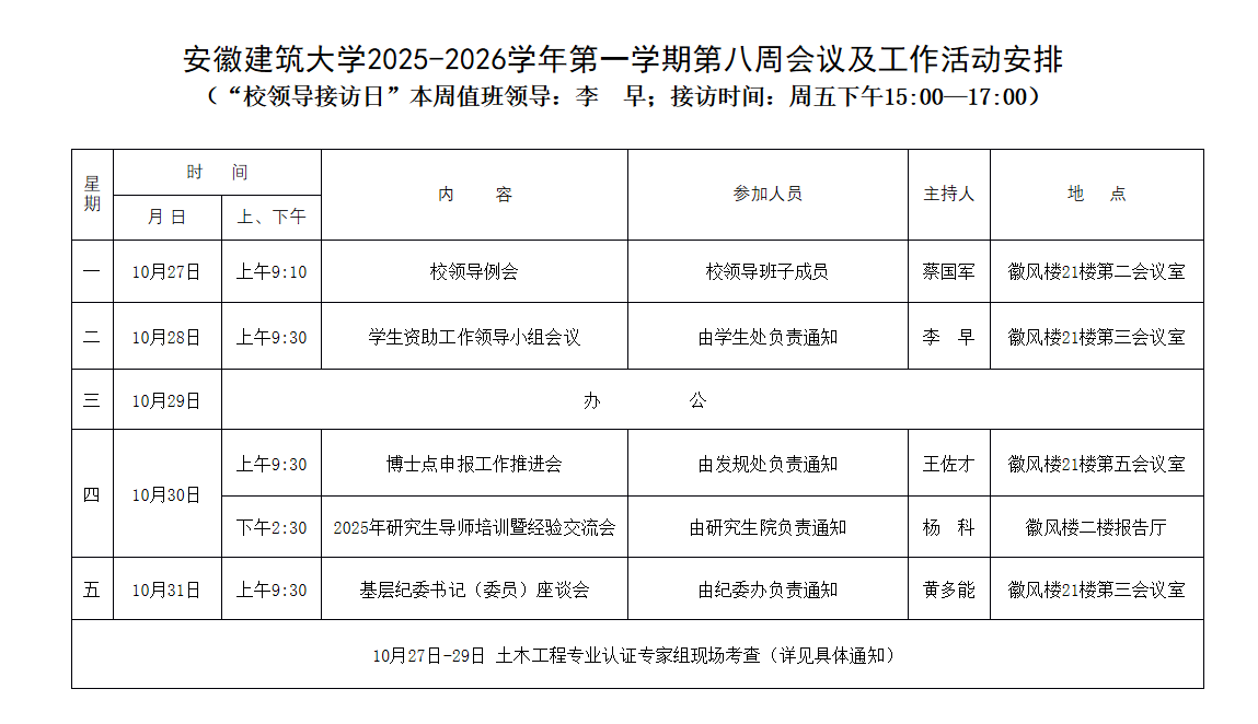 beats365官方唯一2025-2026学年第一学期第八周会议及工作活动安排