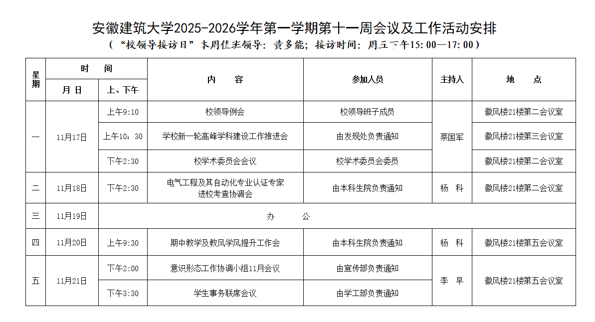 beats365官方唯一2025-2026学年第一学期第十一周会议及工作活动安排