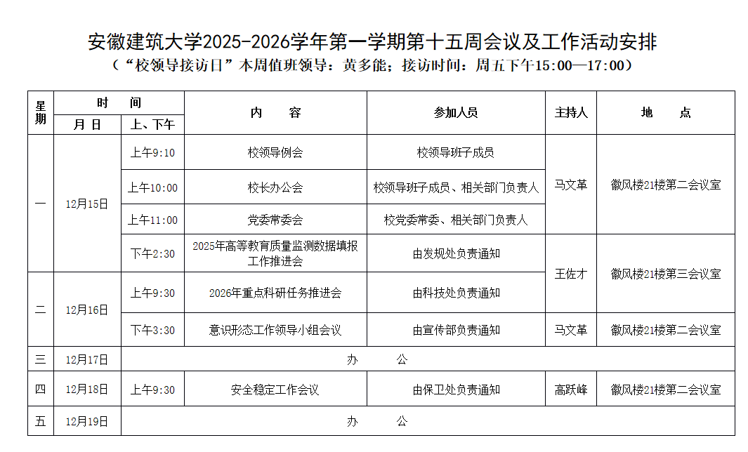 beats365官方唯一2025-2026学年第一学期第十五周会议及工作活动安排