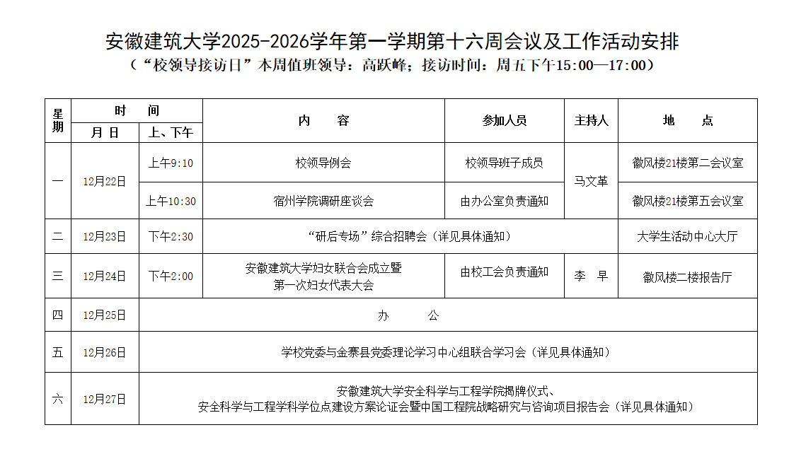 beats365官方唯一2025-2026学年第一学期第十六周会议及工作活动安排