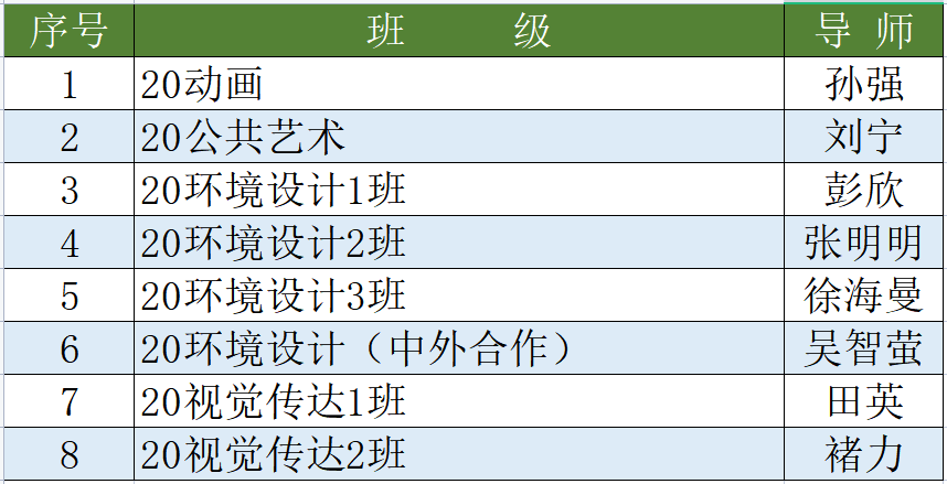 艺术学院2020级导师一览表