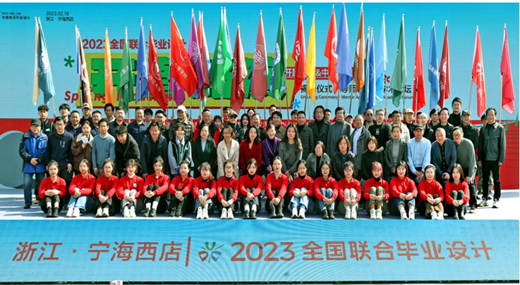 本网讯 2月18日,2023全国联合毕业设计“开春路演”活动在浙江宁海县西店镇隆重举行。艺术学院褚力老师、邵国良老师带领视觉传达设计、公共艺术和环境设计专业的毕业生参加了活动。本次联合毕业设计由浙江宁海县政府和中国联合毕业设计组委会共同主办,中共宁海县西店镇委员会、宁海县西店镇人民政府和东华大学服装与艺术设计学院承办,国际设计科学学会、长三角设计学科党建高校联盟、长三角青年乡村振兴设计教育联盟等为活动指导机构。