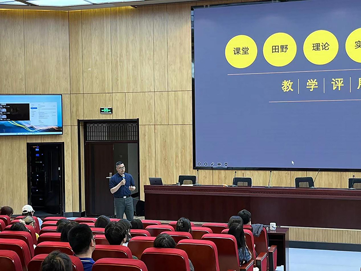 卜令峰以乡村振兴“二十字方针”为指导思想,从乡村实际需求出发,理论与实践相结合,提出系统性的全局视角、细节性的温度设计以及学术性的深度构建等乡村设计的三种思维路径。他表示,近年来多次参与乡村振兴项目,探索通过艺术赋能和设计思维为乡村振兴注入新的活力和创新,在实际项目中应用设计思维解决问题,为乡村振兴中设计方法的研究积累宝贵经验。本次讲座主题鲜明、内涵丰富、重点突出,既有深入的理论分析,也有实践中的升华提炼,具有很强的针对性和指导性在交流互动环节,与会教师围绕乡村振兴中的思维研究与实践的困惑、困难困境以及解决的方式方法展开热烈讨论,现场不时响掌声和欢笑声。