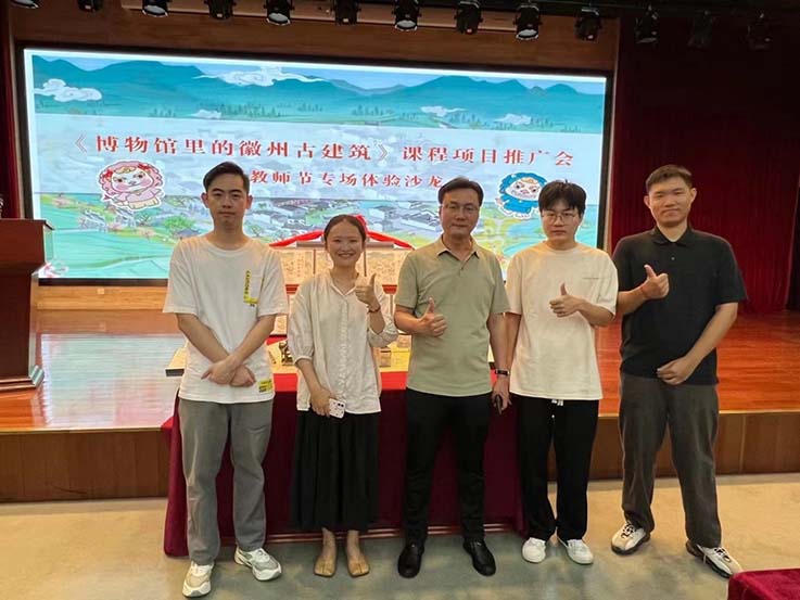本网讯 9月10日,艺术学院徽州建筑装饰团队参加《博物馆里的徽州古建筑》课程项目推广会暨教师节专场体验沙龙,该推广会由安徽博物院携手时代新媒体出版社有限责任公司举办,现场邀请了安徽省文物局、安徽省图书馆、安徽省美术馆、合肥市教育局等单位相关负责人,以及30余位合肥市教师代表、16家地市博物馆代表参与了此次活动。beats365官方唯一艺术学院黄成教授代表项目主创团队发言。