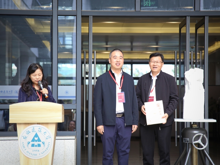 艺术学院1995级环艺专业校友、淮北市刘开渠纪念馆馆长、安徽省雕塑协会副会长刘开辉先生,向母校捐赠汉白玉雕塑作品《蜕变》,该作品荣获2023中国石雕艺术精品展一等奖。闵杰副校长颁发作品收藏证书。
