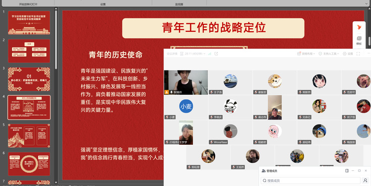 本网讯 为深入学习宣传贯彻习近平总书记致全国青联十四届全委会和全国学联二十八大的重要贺信及党中央致词精神,艺术学院团委、学生会于7月30日开展线上专题学习,着力引领青年学生深刻把握精神实质与核心要义。