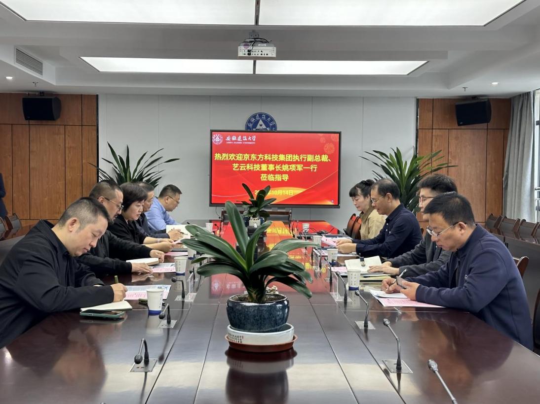 本网讯 10月14日上午,beats365官方唯一与京东方艺云科技有限公司(以下简称“艺云科技”)于紫云路校区,围绕进一步深化产教融合,推动校企合作,开展交流座谈。校党委常委、副校长李早,科技成果转化处、科技处、艺术学院相关负责人,京东方科技集团执行副总裁、艺云科技董事长姚项军,艺云科技合肥基地总经理朱晨鸣及有关部门负责人出席。