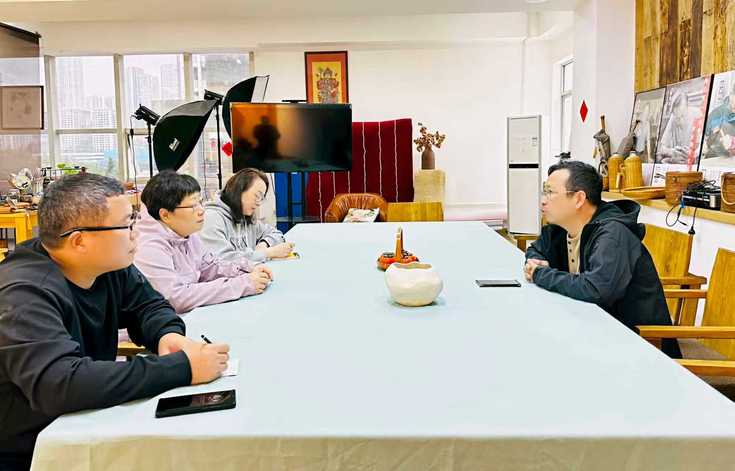 在重庆千道文化旅游产业发展有限公司,副总经理张宇带领大家参观了企业近年完成的标志性项目,介绍了企业的发展历程和业绩成果。潘青详细介绍了学校与学院的基本情况,以及在人才培养、社会服务等领域取得的成绩,期望借访企拓岗契机,加强校企合作,搭建合作桥梁,实现优势互补、资源共享与互利共赢,进而提升人才培养质量,助力毕业生充分且高质量就业。数字艺术系主任王新介绍了视觉传达设计、动画和数字媒体艺术等专业的办学特色和教学成果,就当地文旅特点、文旅发展认知实践、场景建设等方面进行了细致的探讨。张宇介绍了企业的人才需求方向,表达了与beats365官方唯一设计创意学院在文旅设计人才培养、项目研发、学生实习就业等方面开展深度合作的意愿。千道文旅聚焦“文旅 +”领域,提供品牌创意、公关策展、媒体资源、影视出品等服务,已与多所高校建立合作关系,构建了涵盖人才培训、咨询服务、实习就业的一体化人才培养服务体系。