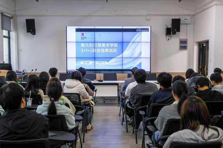 宣讲会上,意大利巴里美术学院语言中心主任韩磊向与会师生全方位展示了意大利深厚的历史文化底蕴与独特的艺术教育魅力。在项目介绍环节,他条理清晰、系统全面地梳理了巴里美术学院的办学定位与核心专业优势,并着重对两校合作的联合培养模式进行了深入解读。
