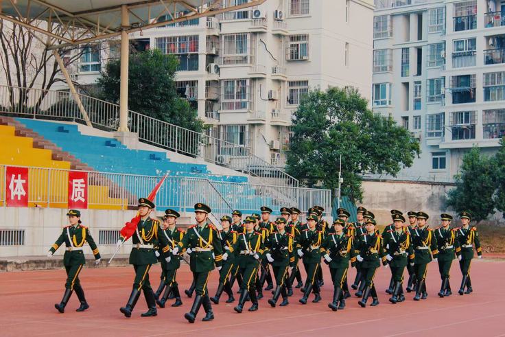 伴随着激昂的《义勇军进行曲》,校国旗护卫队护送国旗入场,全场肃立行注目礼、齐唱国歌,国旗冉冉升起,爱国之情在操场激荡。