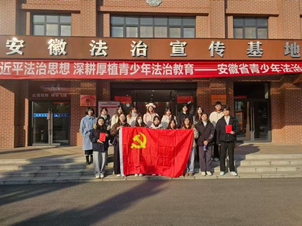 本网讯 为深入学习宣传贯彻习近平法治思想,全面落实“八五”普法规划要求,近日,设计创意学院党委组织30余名学生党员和入党积极分子前往安徽省法治宣传教育基地,参观“学思践悟习近平法治思想 深耕厚植青少年法治教育”主题成果展,沉浸式感受法治文化的深厚底蕴与实践力量。