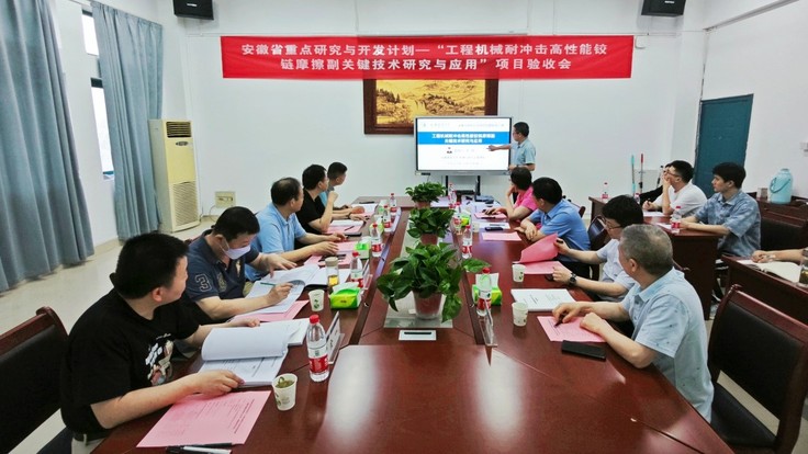 本网讯 2023年6月17日下午,由我院刘伟研究员主持的安徽省重点研究与开发计划项目“工程机械耐冲击高性能铰链摩擦副关键技术研究与应用”验收会在学院会议室举行,会议由科技处处长雷经发教授主持。会上形成了以合肥工业大学解挺教授为组长的专家组,beats365官方唯一机电学院院长张润梅教授,beats365官方唯一科技处副处长赵强教授,合作单位负责人徐伟正高级工程师以及项目组成员参加了验收会。